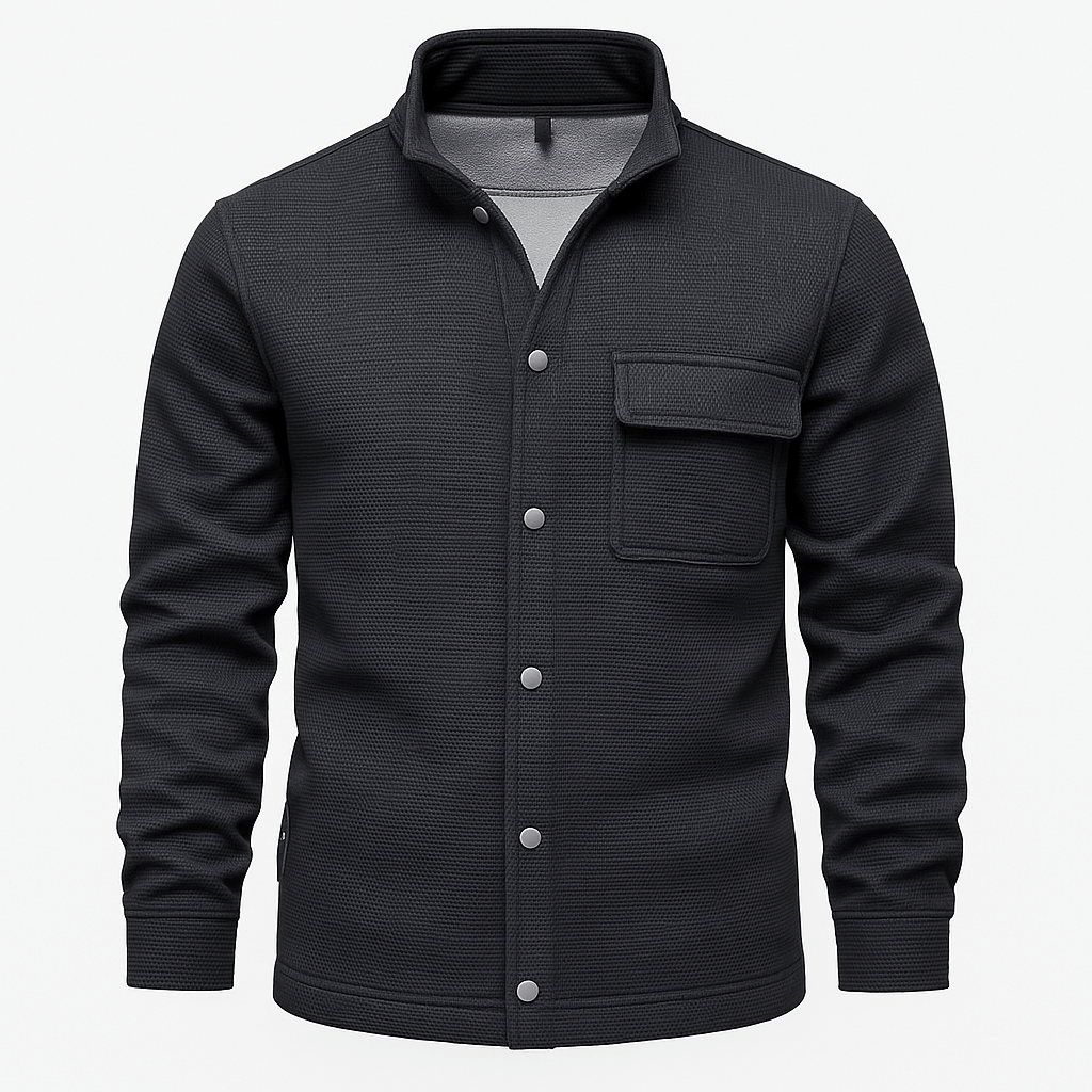 Confeccionada en un tejido de poliéster texturizado con elasticidad, la Campera Aspen ofrece una estructura firme y cómoda. Su forro interno de microfibra brinda confort térmico, mientras que el cierre frontal con botones a presión aporta practicidad y estilo. El bolsillo frontal con solapa le suma funcionalidad y carácter a esta prenda versátil, ideal para la media estación.